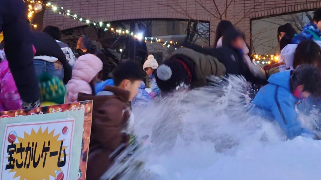 アイスキャンドルはもちろん綺麗でしたが、子供たちの目的は「宝探し」と「豚汁」と「お汁粉」だったような気がします。